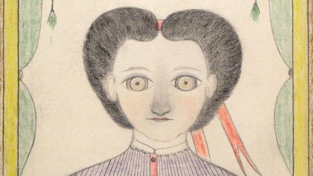 Deeds spent the rest of his life in an asylum, undergoing shock treatment – without any anesthesia – up to twice a week. His pencil and crayon drawings with their meticulous, quaintly-styled lines on small sheets of hospital letter-headed paper show figures, references to the civil war, automobiles and urban landscapes in a rural setting, an imaginary world–the world he used as an escape from his broken life.